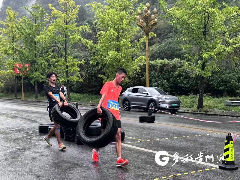 在娄山关游客接待中心终点,气氛愈发热烈。当率先冲线的选手越过终点线时,现场瞬间爆发出欢呼声与掌声。青少年男子组冠军、来自铜仁的17岁体校生冯奥顺难掩激动之情,他气喘吁吁地说:“跑过战壕遗迹时,内心特别振奋,仿佛能感受到当年红军战士的热血与勇气。娄山栖谷的障碍项目虽然难,但每闯过一个,都觉得自己又突破了一次自我,这是一场既考验实力又充满意义的比赛。”