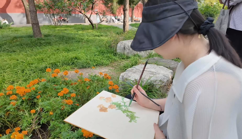 《书画里的中国》第三季直播中,画家万娟将写生对象锁定为北海公园的橘色花,以中国画颜料为工具,从构图布局、细节刻画到画面调整逐步推进。她全程结合实景观察与技法讲解,未加入虚构元素,用真实...