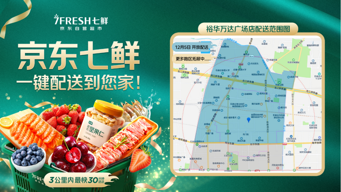 河北新闻网讯(记者 李春炜)庄里人期待已久的京东七鲜超市,终于传来确切开业消息!记者从京东七鲜获悉,石家庄首家京东七鲜超市将于12月19日在裕华万达广场2层正式开业。依托“产地直采”“海捕直达”“酒厂直供”等供应链能力和“最快30分钟送达”的即时配送服务,京东七鲜将在今冬起为市民带来“又好又快又便宜”的购物新体验。