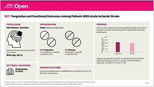 “通心络胶囊治疗缺血性脑卒中的随机、双盲、安慰剂平行对照、多中心临床研究”重磅发表于国际综合医学期刊JAMA Network Open