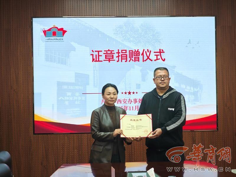 11月4日,八路军西安办事处纪念馆举办了“证章捐赠仪式”。陕西省戒毒管理局的李轩向八路军西安办事处纪念馆捐赠了中国人民抗日军政大学教职员证章、国民革命军陆军第二军军事教导队毕业纪念章、忠义献机纪念章等9枚证章。八路军西安办事处纪念馆党支部书记、副馆长王欢、副馆长陈宏川等30余人参加了捐赠仪式。