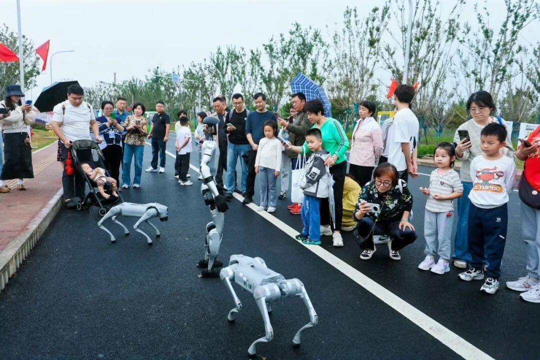 活动现场,动感草坪化身为充满未来感的科技秀场,气氛热烈,高潮迭起。“今天我们准备了5个项目,分别有机器狗与舞狮表演,阿尔法机器人与舞蹈演员的编舞,书法机器人写对联,机器人的格斗表演以及机器人巡游。”鹊山生态文化区一期机器人主题表演负责人张宗奎介绍说,通过机器人表演与互动,既展现人工智能的无限可能,也让传统文化以新潮方式“圈粉”年轻群体,为黄河岸边的新城增添青春活力。
