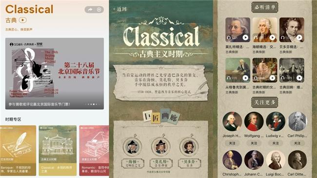 在肖邦国际钢琴比赛期间,QQ音乐古典专区也迎来重磅升级焕新,将散落在不同时期的海量古典音乐作品,重新进行专业归纳整理,重磅推出巴洛克、古典主义、浪漫主义、二十世纪、二十一世纪五大专栏,绽放不同时期的古典音乐光辉。从维瓦尔第的协奏曲、海顿的交响乐、舒伯特的艺术歌曲,到德彪西的印象派音乐、谭盾的东方之声,各个时代的古典音乐大拿与音乐特色一目了然。乐迷们不仅可以通过精选歌单,感受音乐的历史印记,也可以通过趣味猜歌挑战、音乐风格解构,增进对古典音乐的理解,让灵魂与音符激撞出独特体验。