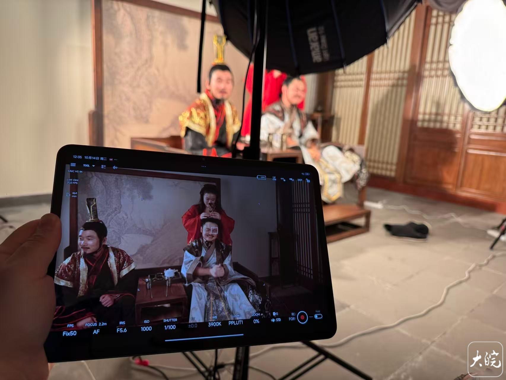 不少观众发现,在第一集“不越雷池”中,正在交谈的庾亮与温峤身后站着两位清新脱俗的红衣侍女,令人眼前一亮。这便是本集中加入的新人演员——一位是“大皖少年”的雅婷姐姐,另一位则是本季服化道、编导曹悦琦。“我们的演员主要都是记者、编辑这些新闻行业的工作人员。就像这张照片里,扮演侍女的曹悦琦也是剧组的化妆师,她正在给剧中的人物整理头饰。”导演张楠说。