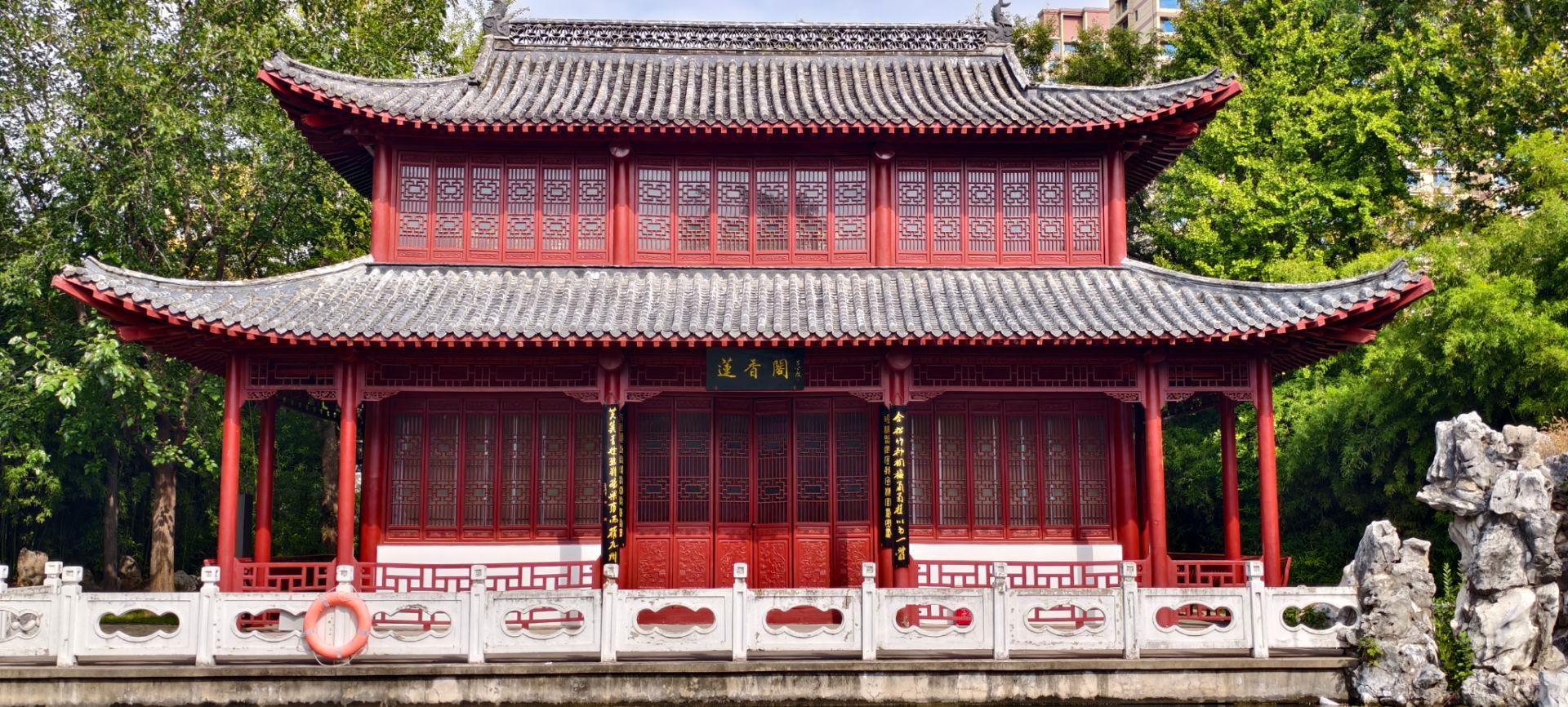 (莲香阁 上联:会松竹柳桐梅兰菊桂以为一体 下联:共冀青徐豫荆扬梁雍而称九州)
