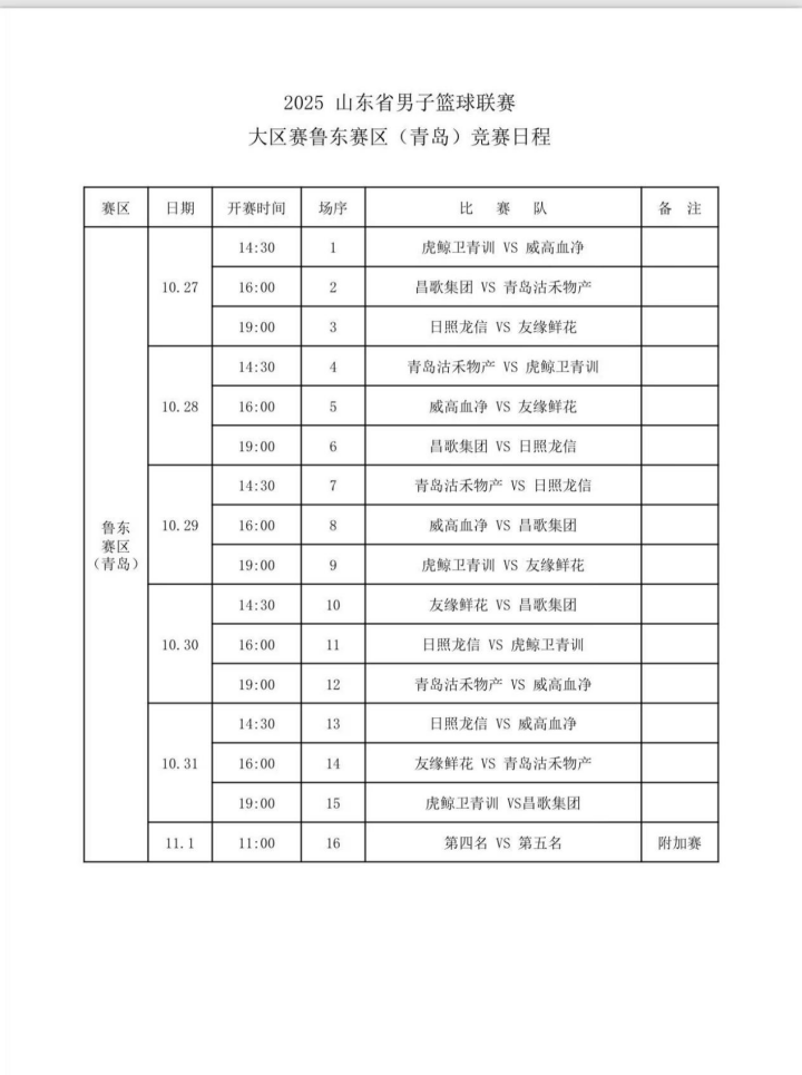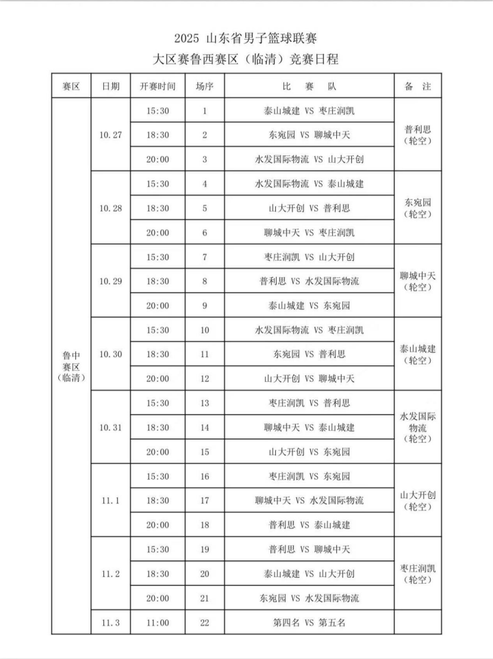 2025年10月17日,2025山东省男子篮球联赛组委会正式发布了本赛季大区赛赛程。三个大区共计要打54场比赛。每个大区赛的奖金均为5万元。