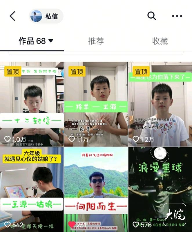 在吴涛的抖音账号中,吴敬轩翻唱的多是一些热门歌曲,多条视频点赞量都有几千甚至上万,其中翻唱明星王源的歌曲比较多。“我从小就听王源的歌,觉得很好听,所以特别喜欢。而且他的歌也比较容易学习,很多我都可以唱。”吴敬轩告诉记者。