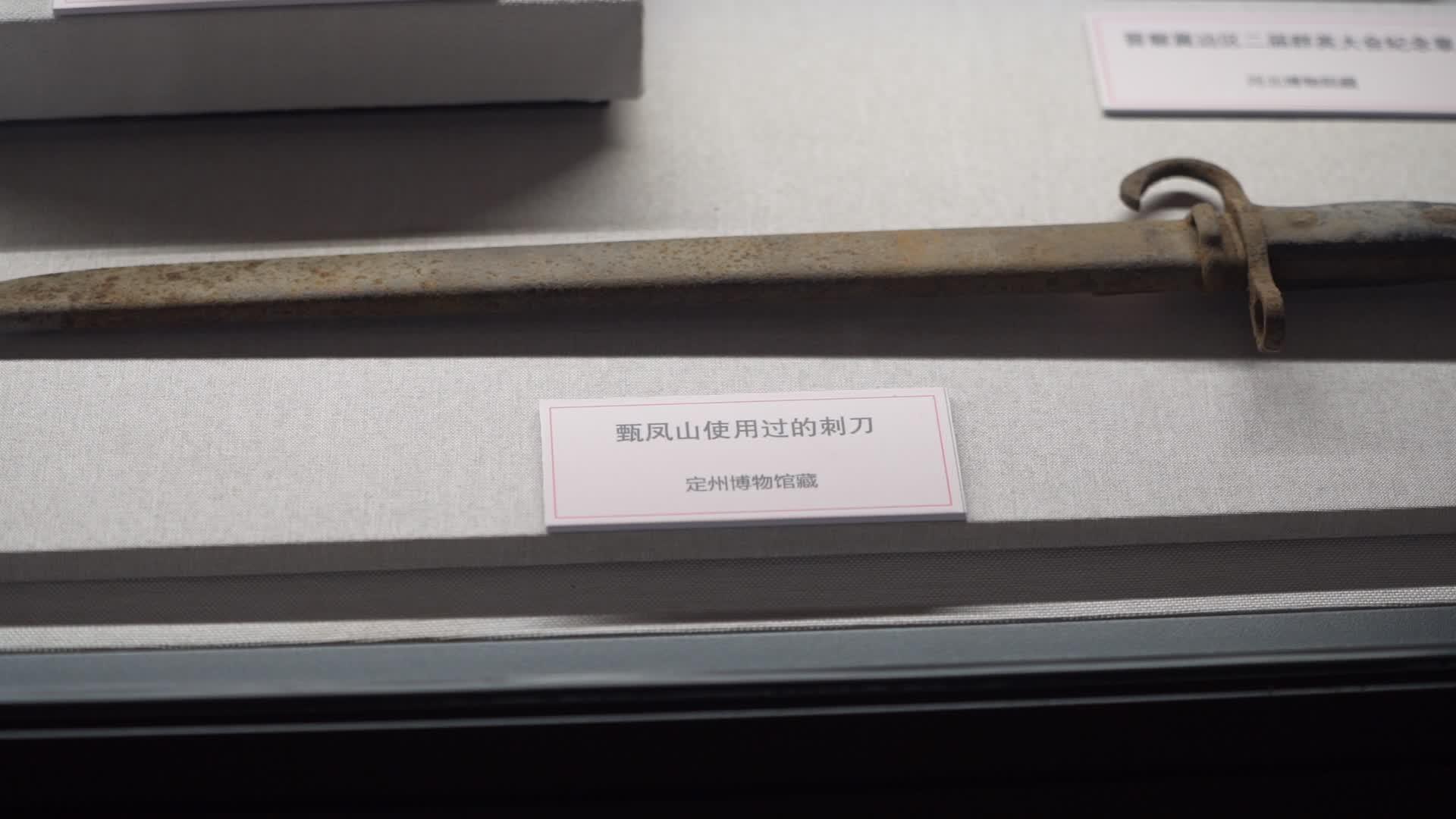 “浴血丰碑——定州革命文物展”上展出的甄凤山使用过的刺刀。