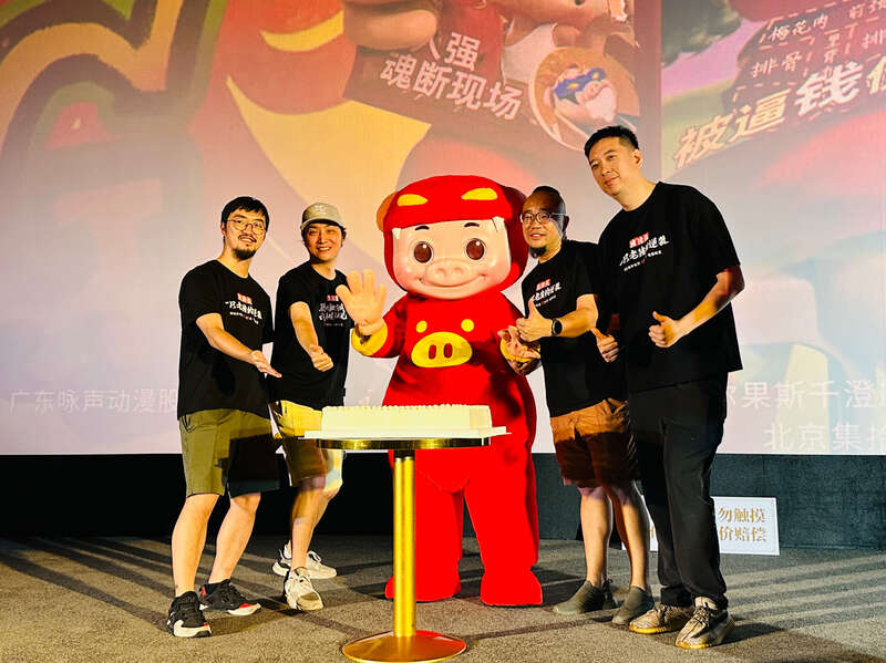 主创团队庆祝猪猪侠20周年。中青报·中青网记者林洁/摄