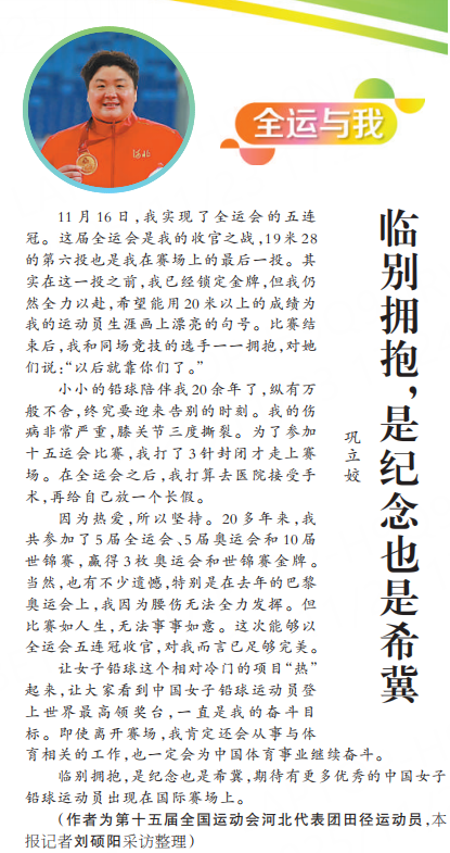 2025年11月16日全运会赛场铅球最后一次从巩立姣手中飞出19米68!金牌!全运会五连冠!与每个后辈拥抱时这位36岁的河北老将都轻声说“以后就靠你们了!”那是巩立姣的最后一投“姣”时...