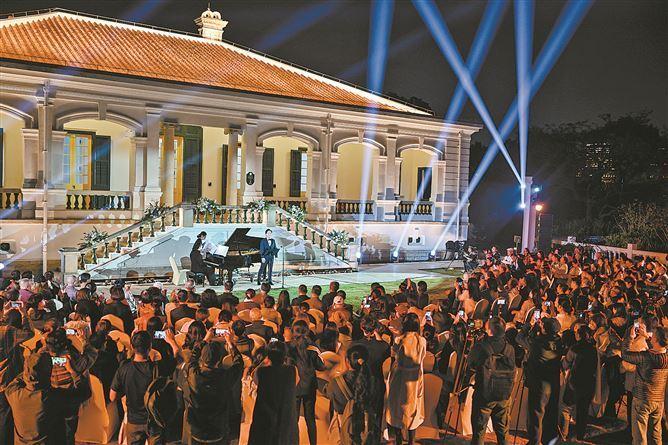 厦门网讯(文/厦门日报记者 朱道衡 图/记者 林铭鸿)夜色如纱,海风送韵。12月18日晚,鼓浪屿漳州路5号的庭院里,悠扬的歌声与器乐声穿透百年时光——修缮后的英国领事公馆旧址,迎来“夜色满庭芳”庭院音乐会。当上海音乐学院院长、著名男中音歌唱家廖昌永醇厚的男中音与白墙红瓦、海风树影相融,这场“音乐+建筑”的跨界盛宴,让鼓浪屿音乐底蕴在夜色中越发鲜活。