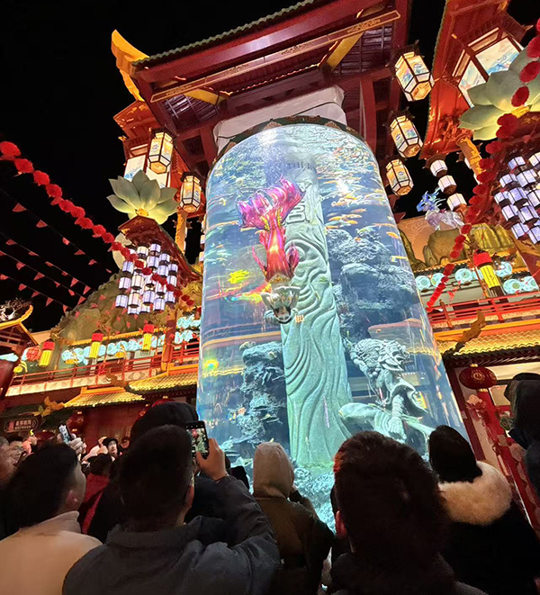 鲁网2月18日讯华灯初上,火树银花。这个春节,青岛山海间不夜城主题街区化作一片流光溢彩的欢乐海洋。街区以“山海共庆・寻味中国年”为主题,将传统年俗与奇幻的山海经故事深度融合,张灯结彩间处处洋溢着喜庆与祥和。一场场视听盛宴,让市民与游客在“步步是景、处处有戏”的沉浸式体验中,邂逅了一个别样的、热气腾腾的中国年。
