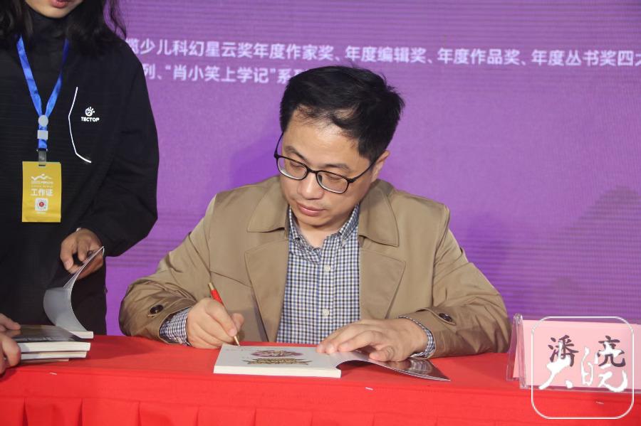 大皖新闻讯 “安徽是我写作梦的起源地。”提到与安徽的缘分,知名儿童文学作家、《王者大陆历险记》作者潘亮饱含深情、娓娓道来。11月16日下午,在黄山书会现场,大皖新闻记者见到了潘亮。这位不会打游戏的作家,却写出了一部热门游戏衍生出少儿科幻探索小说,“希望读者通过王者大陆这个舞台感受到传统文化的博大精深。”