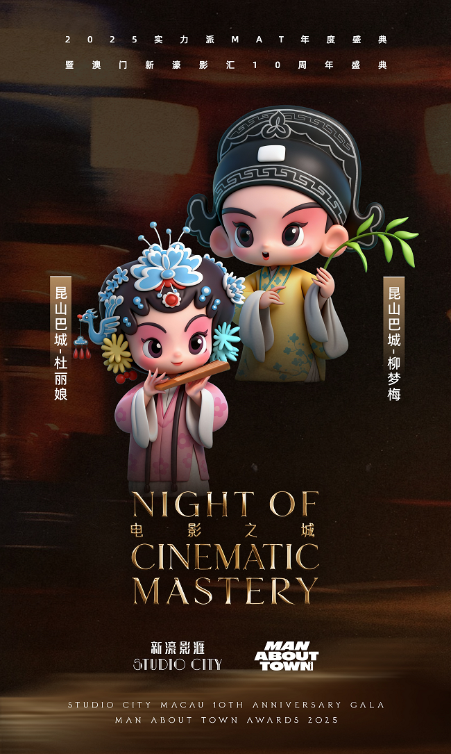 2025年12月10日,澳门星光璀璨。由ManAboutTown中文版杂志与澳门特别行政区政府携手举办的“电影之城——2025实力派MAT年度盛典”隆重举行。汇聚了来自电影、时尚、商业等领域的精英人士,这场聚焦“实力”与“风尚”的盛会现场,更有来自昆山巴城的两组文化IP——“昆曲CP”杜丽娘、柳梦梅与憨态可掬的“大闸蟹Team”联袂登场,以其独特的艺术魅力与当代演绎,成为全场又一焦点,成功完成了一次传统文化与现代潮流的美妙对话。
