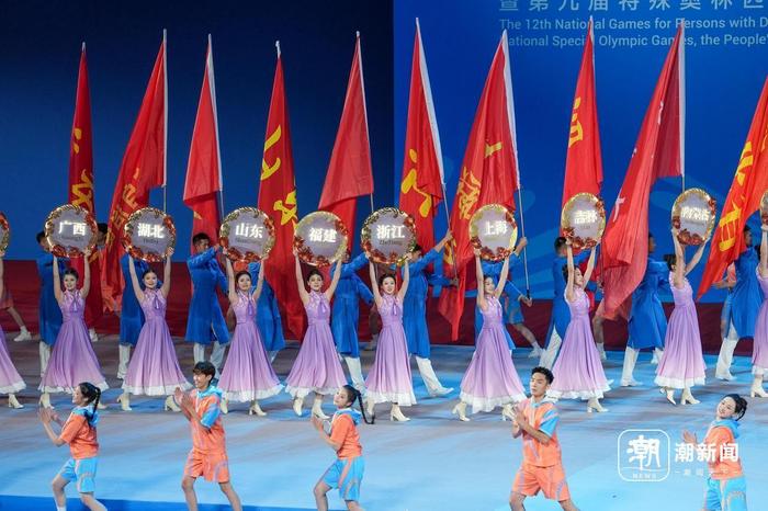 12月15日,全国第十二届残疾人运动会暨第九届特殊奥林匹克运动会正式闭幕,浙江代表团代表入场。潮新闻记者 彭鹏 摄