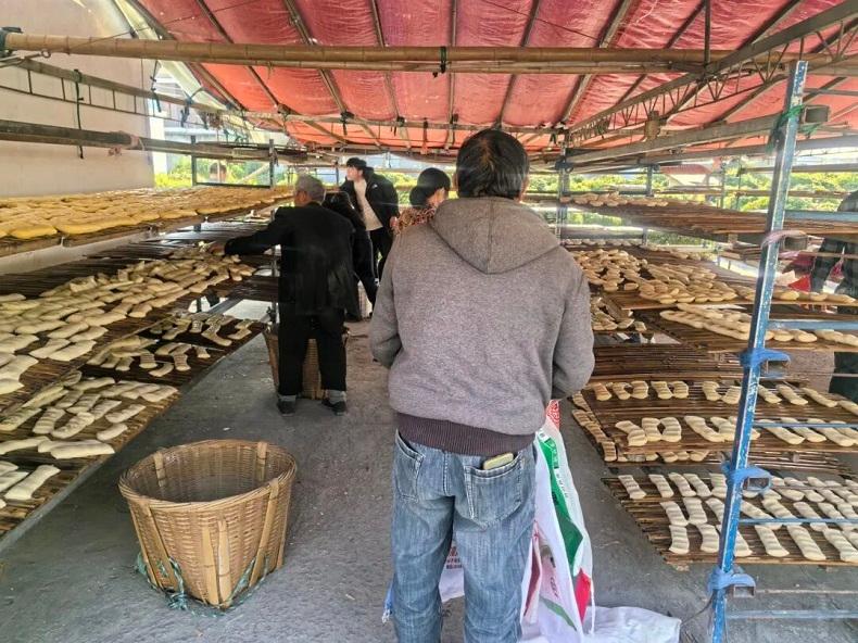 年糕坊旁的晾晒棚里,站满了等候的市民,他们当中,少的做了100多斤,多的则做了300多斤。市民们说,虽然做了很多年年糕,但如今,年糕的口味也有些变化,更喜欢加入小米、玉米、高粱等粗粮,不仅吃起来健康,口感上软硬程度也所有不同。所以每户人家都是自己带粮食来加工,比例上也有独特的“秘方”。