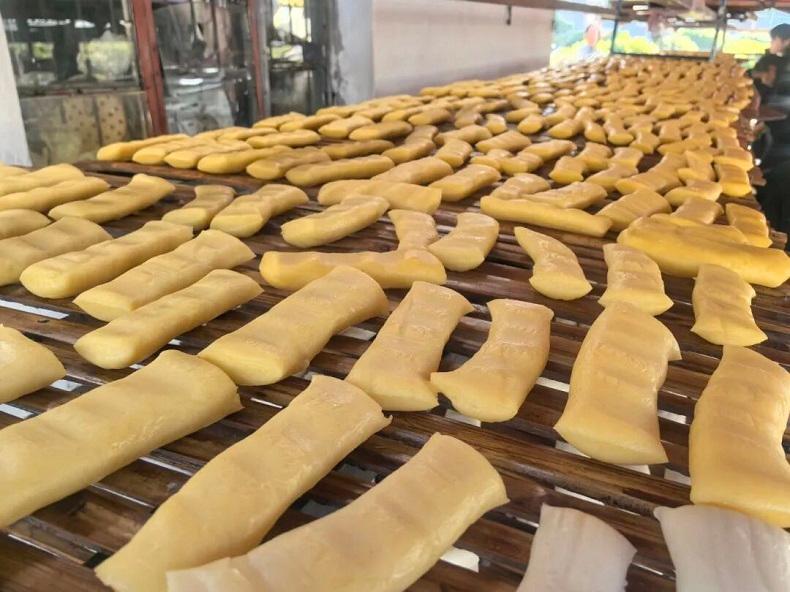 市民徐先生说:“小米年糕好吃,小米与粳米是对半掺的,有的糯一点,有的硬一点,这里都是条状,我们那边做好都是整块的。”