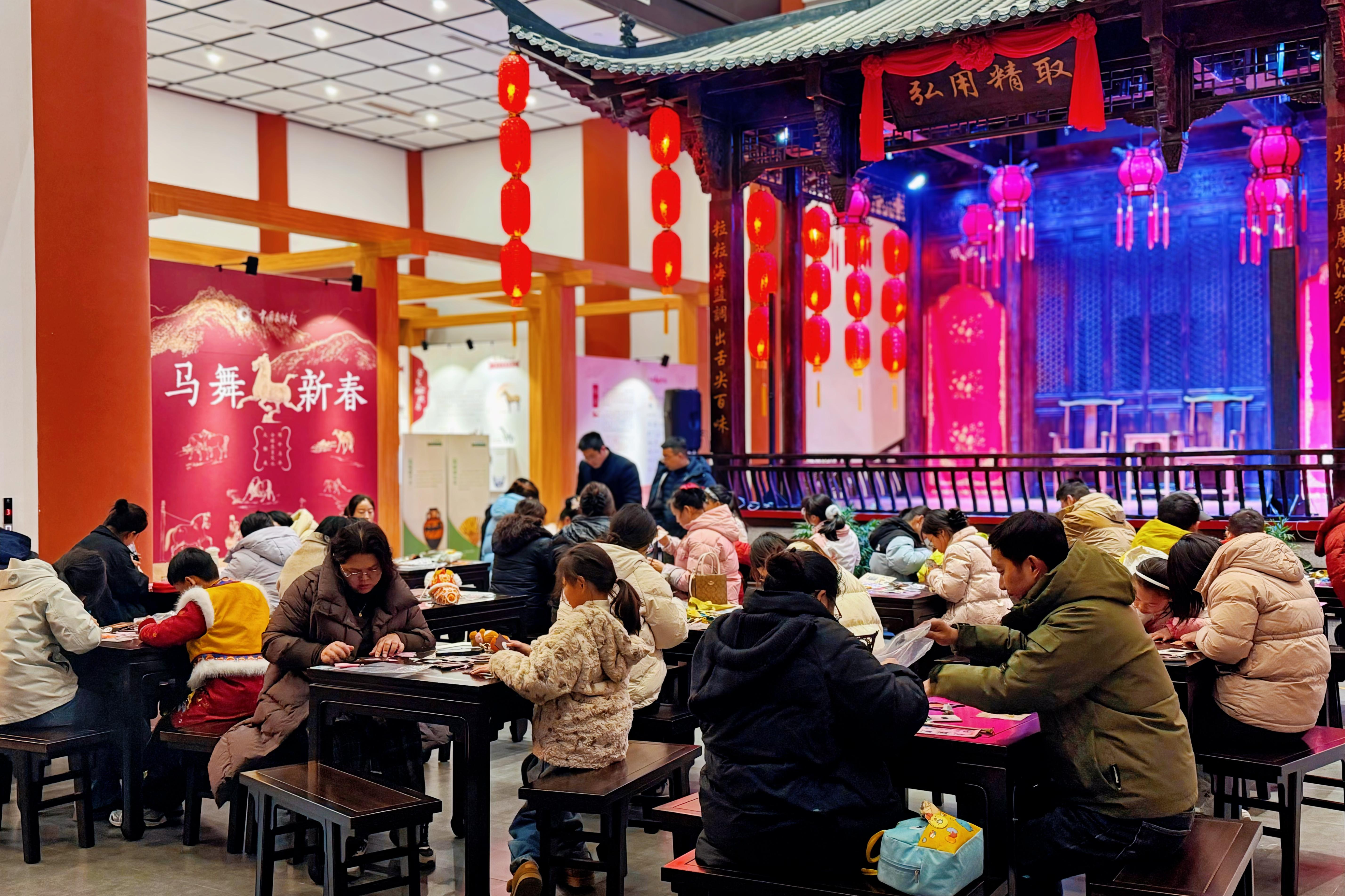 馆内三大新春特展依旧热度不减。“匠心流转・生生之美——非遗技续艺新展”中,剪纸、金银细工、绒花制作等非遗技艺,让公众在元宵佳节感受传统手艺的传承与新生;“金玉满堂——沈阳故宫典藏文物展”里,承载着丰饶祥瑞寓意的宫廷文物,与新年祈福纳吉的民俗情感高度契合,逛展便是沾福气;“马舞新春——丙午马年全球生肖文化大联展”则呼应马年新春,各地马文物相映成趣,让公众在欢度元宵的同时,读懂马的文化意象,寄托事业兴旺的美好期盼。“逛完街市闹元宵,再看展览涨知识”,成为本次活动公众的主流体验方式。