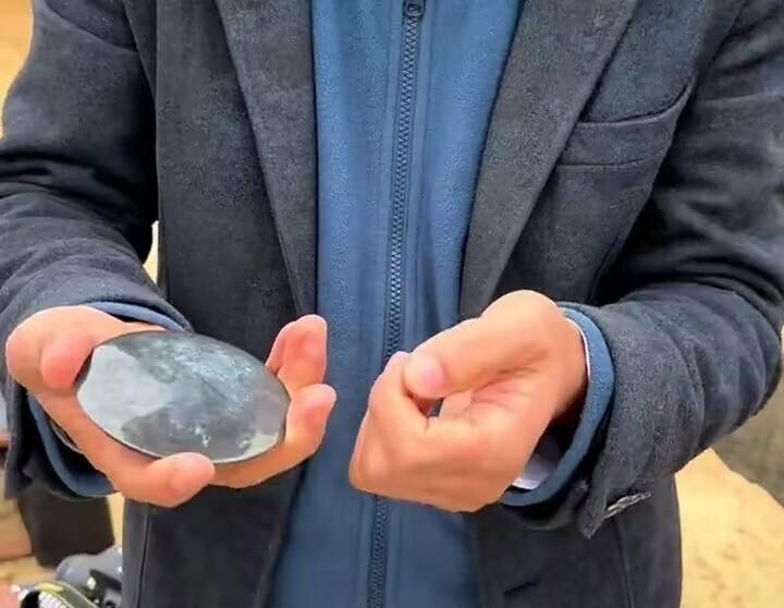 古墓中发现的铜镜光可照人(图片来自短视频平台截图)