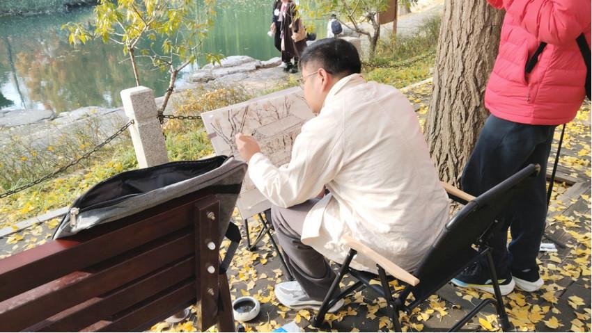 当立冬已过,中山公园内银杏鎏金、朱墙静伫,千年国画笔墨传统于此悄然苏醒;当故宫旁的这座北方名园,迎来青年艺术家郭林吉的全情写生,一场跨越时空的艺术对话便在此发生。《书画里的中国》系列直...