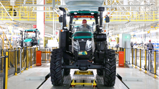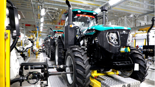 在大马力拖拉机“智慧工厂”,智能化装备与MES系统默契配合生产效率达到了全新高度,产能较平日提升50%以上,履带机工厂通过产线优化与科学排产产能较平日提升30%以上,各生产单元以最大负荷运转确保急需农机快速交付。