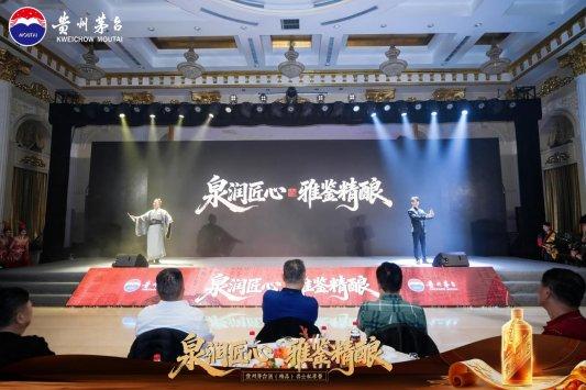 晚宴在典雅温馨的氛围中展开。嘉宾首先共同观看贵州茅台酒(精品)品牌宣传片,随后沉浸于《鹊华秋韵・茅台境》意境中,领略山水凝韵与岁月成酿的完美交融。