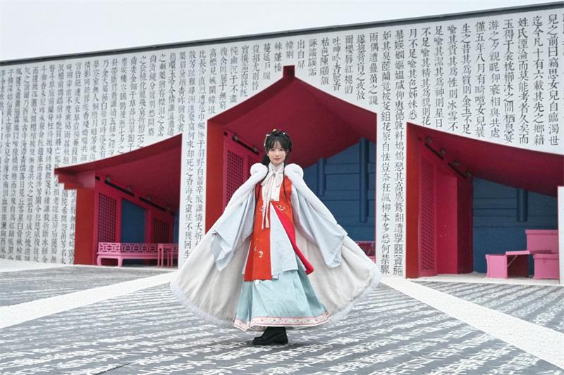 11月6日,游客在只有红楼梦·戏剧幻城打卡拍照。