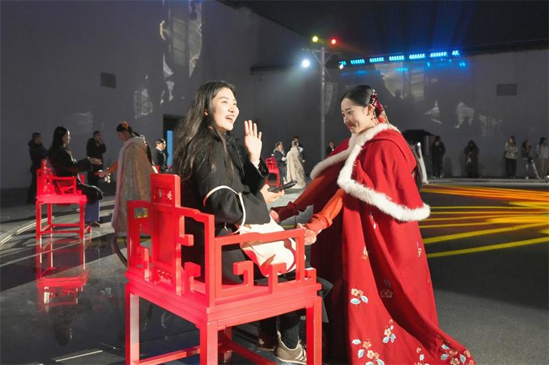 11月6日,在只有红楼梦·戏剧幻城《轮转》剧场,演员与观众互动。