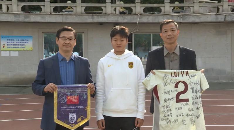 从十堰走出的U17国家女子足球队队员刘禹含回到十堰,看望曾经的教练及队友,并向母校捐赠了球衣。