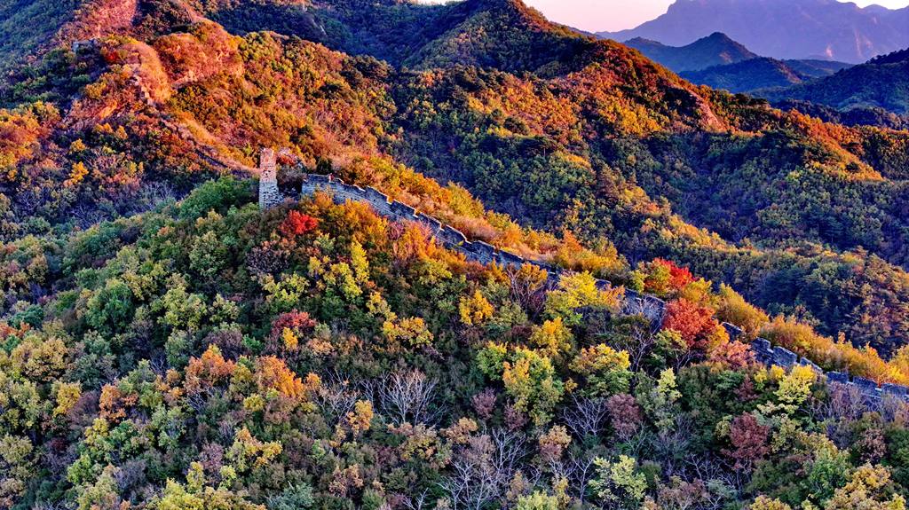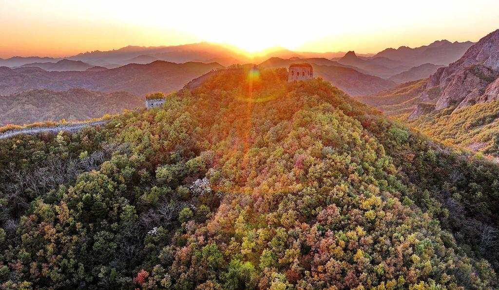 10月27日拍摄的秦皇岛市海港区驻操营镇长城秋景。近日秦皇岛市海港区驻操营镇长城进入最佳观赏期山间层林被秋意染透红橙黄绿的彩叶错落交织与蜿蜒伸展的古长城相互映衬色彩交织间尽显秋意浓构成...