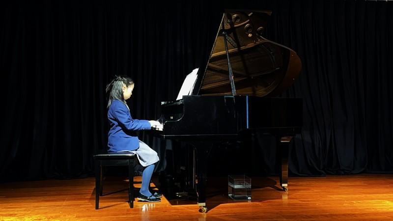 李晓溪曾获贝多芬国际音乐节中国区总决赛金奖、牛津音乐环球大赛中国赛区金奖,这次她演奏的是中国经典曲目《卖杂货》,这首以生动音乐语言勾勒市井图景的作品,在她明快的节奏把控下,瞬间将现场观众带入鲜活的情景;李晓添曾晋级施坦威青少年钢琴比赛北京赛区决赛,今天他演绎的《肖邦圆舞曲 Op70.No2》,细腻的触键与精准的情感表达,尽显古典音乐的优雅魅力;谭梁悦呈现的作品是《帕格尼尼主题变奏曲》,复杂旋律与多变技法的无缝衔接,印证了她在训练中打磨出的扎实功底,这位曾荣登美国纽约时代广场大屏幕、今年晋级施坦威全国青少年钢琴比赛北京赛区决赛的琴童,以实力赢得全场掌声;王梓潼带来黄虎威创作的《阿坝夜会》,这首选自《巴蜀之画》的钢琴小品以藏族民间素材为核心,通过单三部曲式构建出浓郁的民族风情,演奏中她精准把握作品结构特点,左手密集伴奏与右手清晰旋律的巧妙呼应,在乐句起伏的细微变化中传递情感张力。音乐会在热烈掌声中落幕。